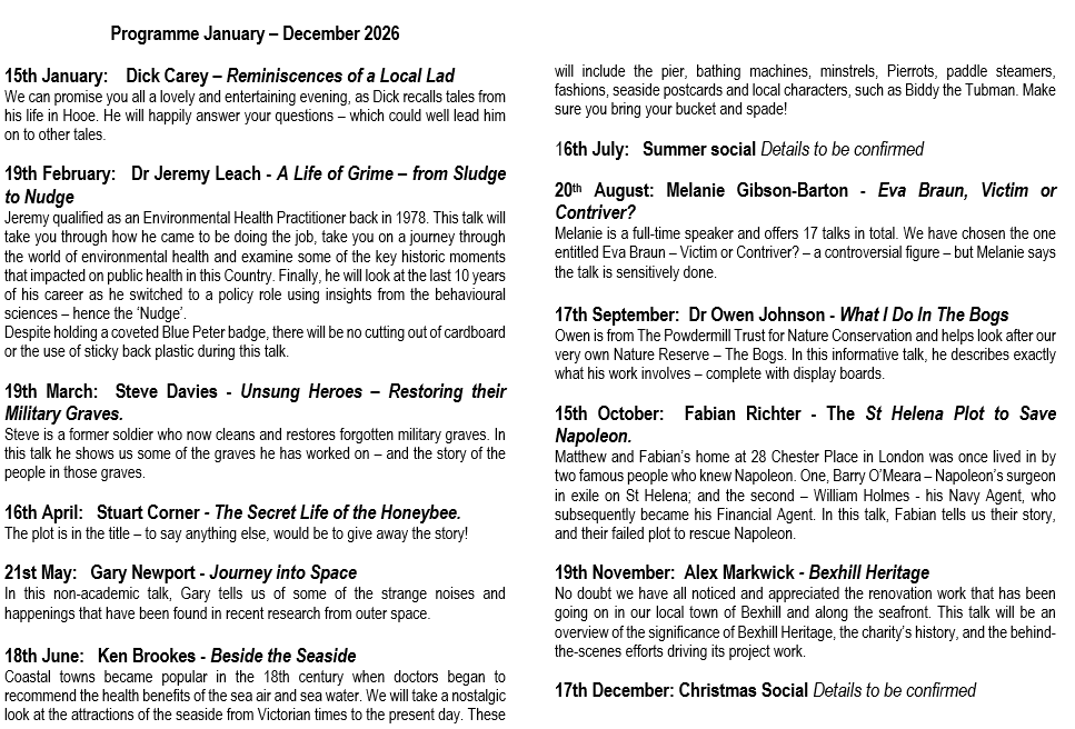 HOOE HISTORY SOCIETY MEETINGS 2024 -2025